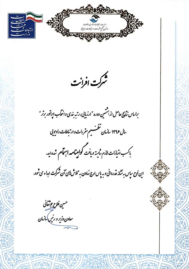 | 3 | انجمن حمایت از توسعه فضای آموزشی (حامی) | از 1400 تا کنون | پهنای باند 5mbps |