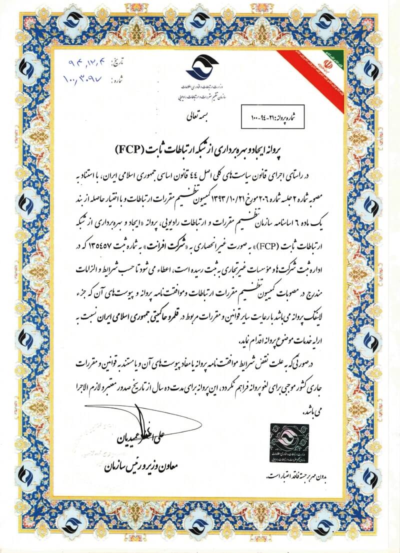 شرکت افرانت با ارائه خدمات و راهکارهای مبتنی بر دیتا شامل پهنای باند اینترنت، شبکه انتقال، خدمات ارتباطی، دیتاسنتر، خدمات ابری برای سازمانها و کسبوکارها بهعنوان رکن اصلی شبکه ملی اطلاعات و اینترنت در کشور ایفای نقش خواهد کرد.